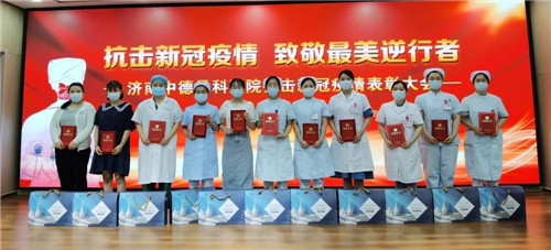6月11日下午,济南中德骨科医院成功举行“抗疫表彰大会”,对参与抗疫工作的护理人员颁发荣誉证书并进行公开表彰。院长贾庆伟、王建新、护理部主任杨浩英及全体护理人员共同参加。